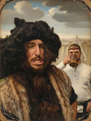 Ambassadeur Ruspodar visitant notre camp en 1214, sous l'œil prudent de Sire Du Boulet.