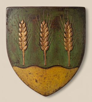 Les récoltes traditionnellement abondantes dans la seigneurie furent représentées sur les armoiries par un un écu dont les épis de blé comblaient le sac représenté ici par la pièce en champagne d'or.